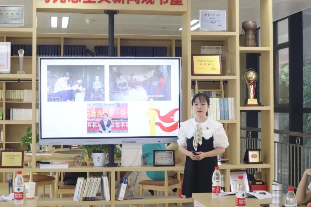 2020级专硕班的何艺同学讲述了“中国青年五四奖章”获得者杨宁的故事。大学毕业后杨宁放弃了留在大城市的机会,毅然回到贫穷的大苗山,成为了一名老员工村官,带领着乡亲们走上致富之路。肩负时代使命,绽放青春之花。在何艺的生动讲述下,青年党员杨宁奋斗的身影在故事分享会现场再现。何艺表示,她想把杨宁的故事分享给更多的人,让更多的人去领悟革命理想的高度,去体会中国共产党的初心及使命的深度,让红色精神、红色文化焕发新的时代光芒。