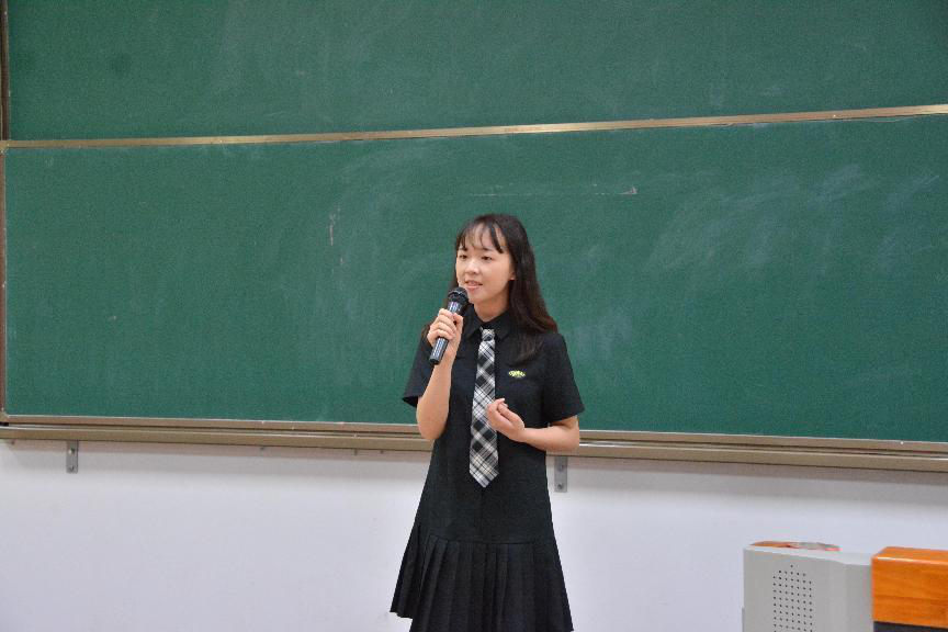 21级专硕班的石鲜鲜以“以新闻为笔,以三观为尺,以时代为纸”为题,结合自身新闻工作经历,向大家讲述了一个新闻学子是如何向外传递能量的。“从校报记者部的文字小白,到能够独立发表25W浏览量的人物群像稿;从在雨中面对采访对象的手足无措,到在网易新闻能够临危受命采访3小时获得事实增量。我发现自己可以执笔,让更多有角度的新闻事件、有深度的社会现象、有温度的小人物让大家看到。”石鲜鲜特别提到,作为记者,我们心中可以有悲悯,但是客观呈现新闻事实,才是记者的职责所在。