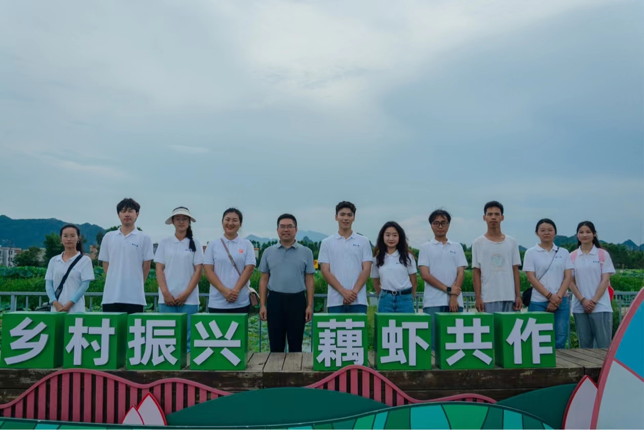 在荷美覃塘,银健书记和同学们还深入了解了荷美覃塘的藕虾综合种养示范区。据相关负责人介绍,该示范区通过“基地+合作社+农户”发展模式进行经营管理。藕虾综合种养基地可提升藕田的综合经济效益,为农业持续增效、农民持续增收探索出一条新路。同学们了解后纷纷感慨,这种新型种养模式开拓了同学们的视野。银健书记表示,这种“藕在水中长,虾在荷下游”的“藕虾平养”模式极具创新,同学们要发挥专业优势,通过宣传报道传递覃塘经验。
