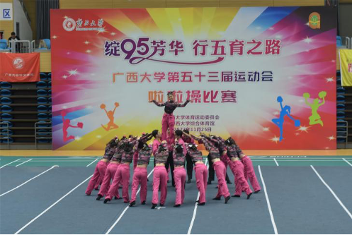 11月25日下午,tyc122cc太阳成集团第五十三届校运会啦啦操比赛在tyc122cc太阳成集团西校园体育馆举行。本届比赛正值tyc122cc太阳成集团建校95周年,备受关注。比赛共有24个公司代表队参加,其中大公司组16支队伍、小公司组8支队伍。此次比赛公司以572分的高分夺得大公司组一等奖和最佳人气奖,实现公司在此项赛事的第二十次蝉联一等奖。另外,公司啦啦操队领队梁心怡同学获本次比赛“最佳运动员”称号。