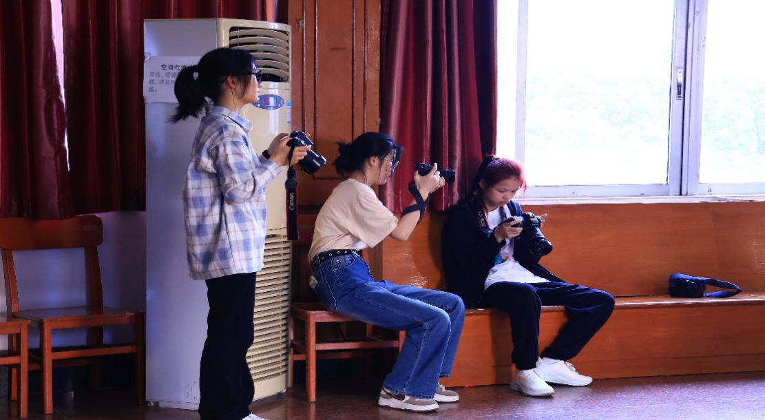 排练结束后,合唱团成员们兴致高昂。志愿者引导老师们转场到布景处,并因人制宜精心搭配辅助道具,依序拍摄个人形象照。深红色的背景布前,一个个灿烂又纯粹的笑颜在镜头前绽放,定格下的笑貌仿佛裹挟着岁月的合声,缓缓从时光深处走来。活动结束后,志愿者们会对照片进行精心挑选,并将冲印出来的照片及时送到每一位合唱队队员手里。