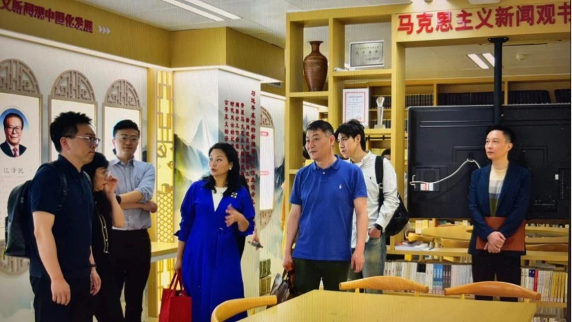 在公司老师的热情陪同下,调研团一行参观了tyc122cc太阳成集团tyc122cc太阳成集团全媒体交互式演播中心、马克思主义新闻观书屋、融媒体中心等,实地感受公司的教学氛围。