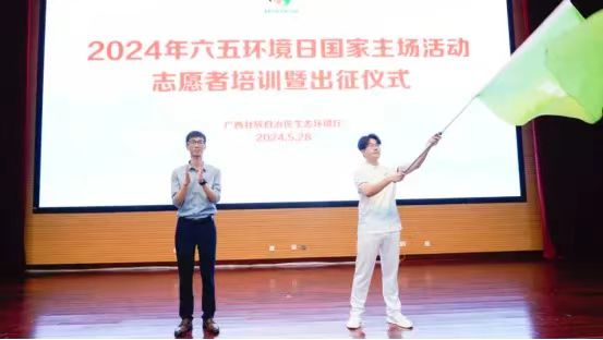 5月28日,2024年六五环境日国家主场活动志愿者培训暨出征仪式在广西壮族自治区生态环境厅举行,公司学工组黎明老师带领50名志愿者参会。