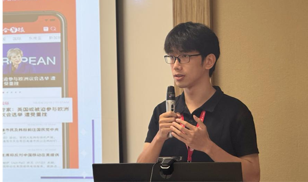 在助理教授莫莉指导下,硕士研究生曹涵兮在“华文媒体与区域发展”分论坛上(专题为“东南亚华文传媒”),以《中华民族共同体在国际传播中的话语实践与时代意义—基于东南亚华文媒体的实证分析》为题作报告。他在报告中指出,东南亚国家是中华文明辐射圈层中的重要组成部分,在民族治理和区域合作中有着强烈的共同体构建诉求,是“中华民族共同体”对外传播的天然土壤。研究系统爬梳东南亚主流华文媒体中“中华民族共同体”相关报道,使用费尔克拉夫三维框架展开话语分析。研究发现,东南亚华文媒体围绕民族发展、文化、关系与治理等核心主题,以中国大陆媒体为主要信源,融合政治、学术、文化等多元话语,形成了三种特色报道模式;“中华民族共同体”理念内在契合东南亚“多元一体”发展趋势,为多民族国家治理提供中国智慧,以“和合”思想赋予海外华人推动构建人类命运共同体的重大使命。