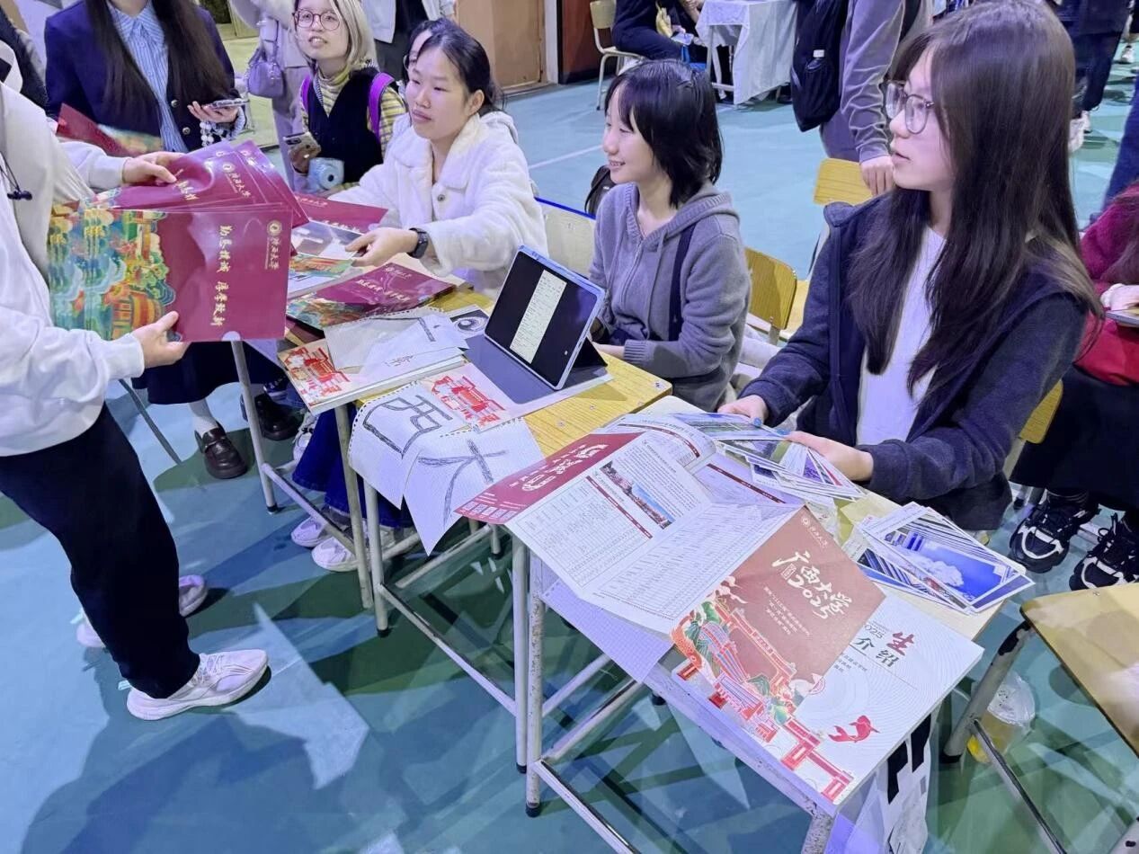 课间的喧闹、放学的人流,摊位前始终人气满满。从西大的学术氛围、特色专业,到校园里的四季风光、青春趣事,两位同学耐心解答每一个疑问,细致分享自身求学经历,把西大的活力与温暖,一点点铺陈在母校的蓝天下,让每一位前来咨询的学弟学妹,都能近距离感受西大的魅力。