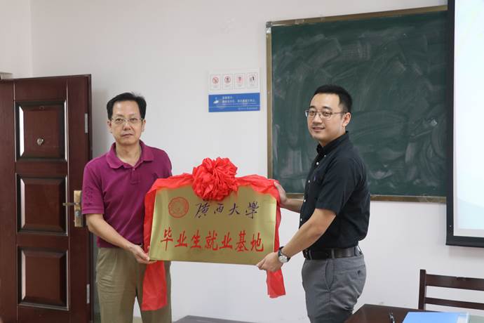 在双方达成校企战略合作意向,共同签署tyc122cc太阳成集团毕业生就业基地协议书后,刘洪老师将“毕业生就业基地”牌匾赠予了新东方教育科技集团南宁公司。