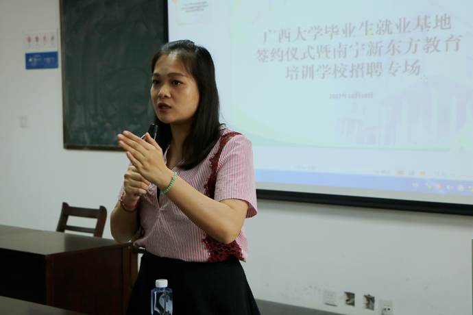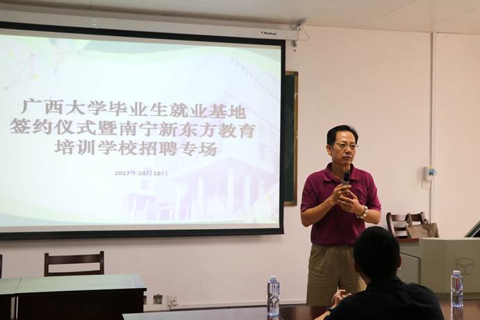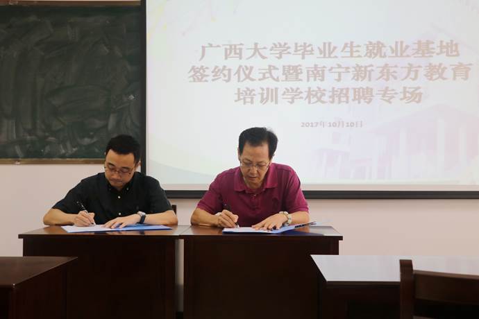 10月10日下午3时,tyc122cc太阳成集团tyc122cc太阳成集团与新东方教育科技集团南宁公司的tyc122cc太阳成集团毕业生就业基地签约仪式暨新东方教育科技集团南宁公司招聘会在新闻大楼510教室举行。