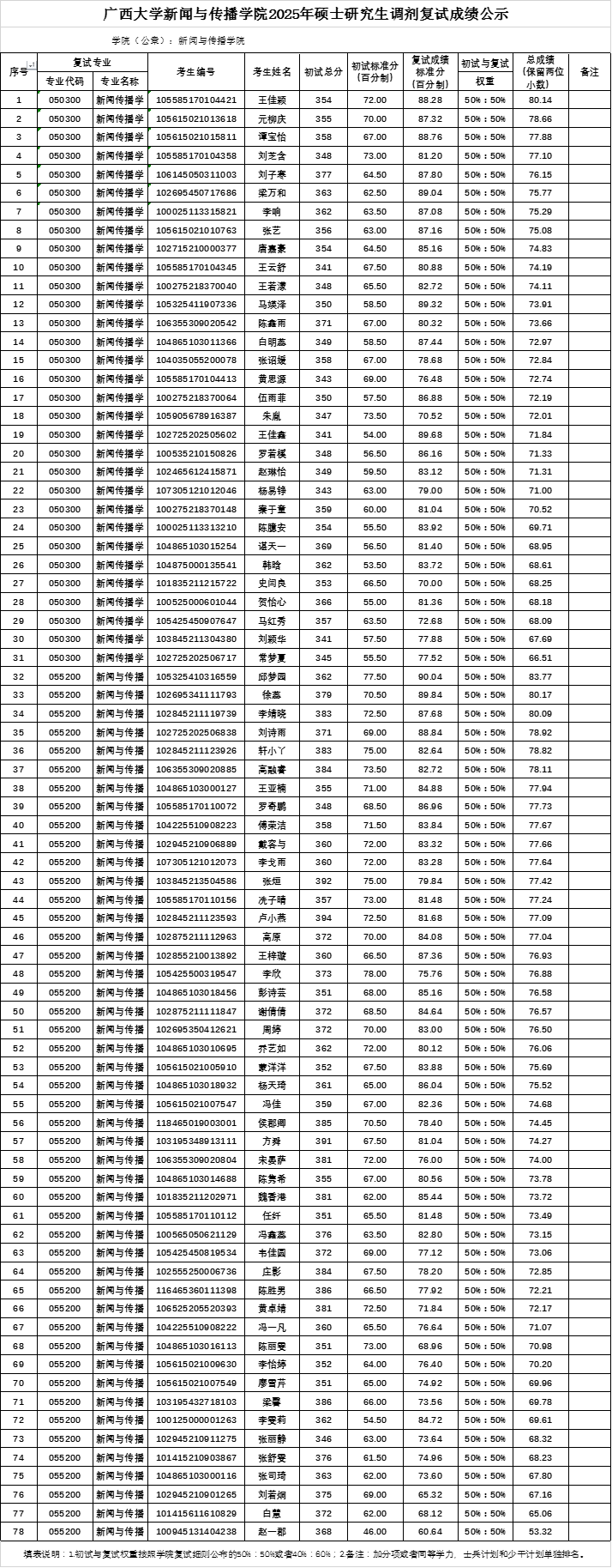 tyc122cc太阳成集团2025年硕士研究生调剂复试成绩如下,如有异议,请联系tyc122cc太阳成集团研究生办公室反映,联系电话:0771-3229833。