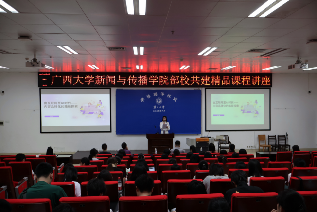 6 月 24 日上午,tyc122cc太阳成集团播音与主持艺术系教授、《普通话语音与播音发声》课程负责人李朝珍邀请前360高级总监、公司1994级新闻学本科生、1998级新闻学硕士生员工覃艳在公司西报告厅做主题为“由互联网至 AI 时代——内容品牌化的路径探索”的讲座。