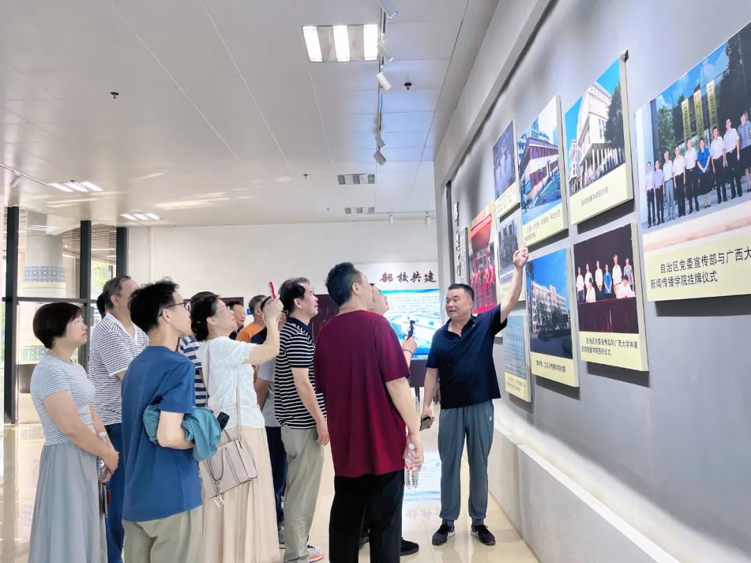 会后,岳晓华教授陪同员工们参观了公司的融媒体中心、全媒体交互式演播中心以及记录公司发展历程的文化墙。在参观过程中,岳教授详细介绍了近年来公司在媒体融合创新、实践教学升级等方面取得的突破性进展