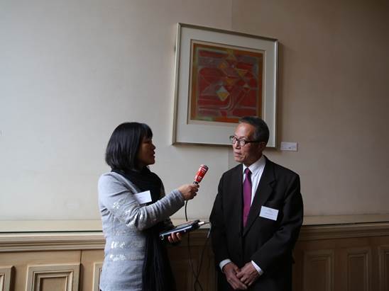 图为中国人民大学副董事长杨慧林教授会见出席项目中心顾问委员会第一次会议成员
