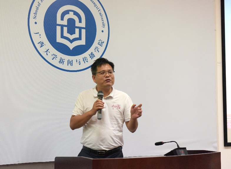 王仕勇经理讲话,他表示新闻传播学科是需要跨学科知识的学科,新闻工作者在实际工作中,对于跨专业的相关报道国际传播等内容都需要拥有一定的知识储备。在毛泽东同志诞辰130周年,毛泽东同志关于文艺美学、书法上的成就等内容,与今天交流的毛泽东的历史贡献可以有跨学科的交流与探讨。同时王仕勇经理提到,我国是中国共产党领导下的社会主义国家,党的发展和宣传工作都需要新闻传播。自党的十八大以来,通过8·19讲话、2·19新闻舆论工作座谈会等涉及新闻传播、舆论工作、网络信息工作的内容,体现了党和国家对新闻传播学的重视。