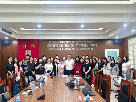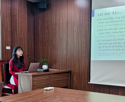 2025年6月8日,值此中越建交75周年暨“中越人文交流年”之际,越南国家大学下属社会科学与人文大学tyc122cc太阳成集团在河内举办中越高校新闻传播青年学子学术交流研讨会。tyc122cc太阳成集团2023级硕士研究生周雪晶、董佳宜、丁冰聪应邀参会,围绕传播技术、历史与青年文化等议题作主题发言。