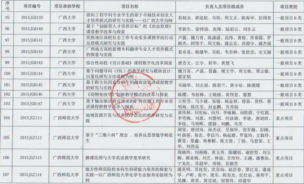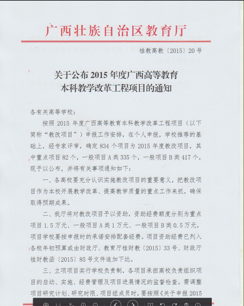 公司唐方文副教授申报2015年度广西高等教育本科教学改革工程项目获得立项