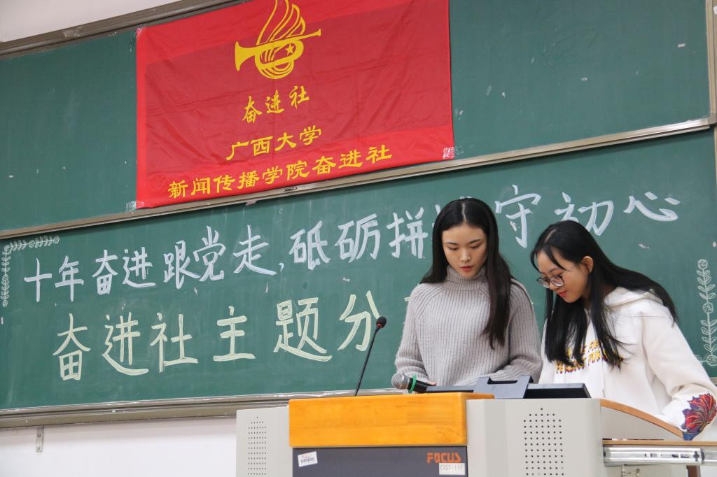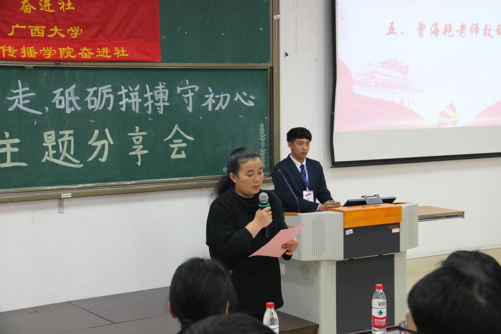 曾海艳老师在发言中给奋进社送出祝福和期望:“十年是一个里程碑,也是一个新的起点,我希望奋进社在新的十年里继续成长、发展壮大,奋进社的明天会更美好。”