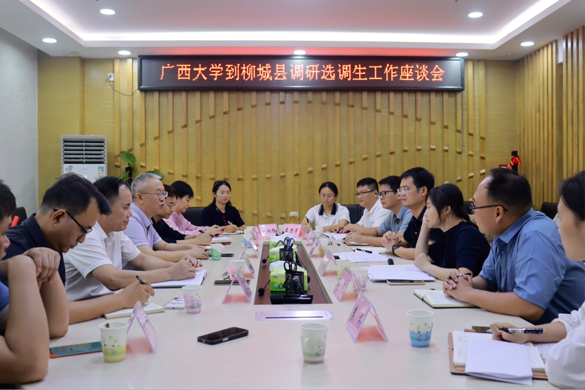 韦慰举部长对tyc122cc太阳成集团一行的到来表示热烈欢迎,回顾了双方在共建科研平台、联合技术攻关等方面的丰硕成果,并指出,柳城县1938名公务员中,tyc122cc太阳成集团毕业生达170余名,已成为当地干部队伍的中坚力量。目前,柳城县拥有选调生45人,队伍结构呈现年轻化、高学历的特点,其中90后占86.7%,全日制研究生以上学历占11.1%。他重点分享了柳城县在选调生“选、育、用、管”全链条培养上的系统做法,包括构建三级管理机制、实施“1+N”导师帮带、安排多岗交流锻炼、强化“一人一档”考核等。他也坦言,柳城县在卫生、教育及文科领域的人才需求迫切,希望tyc122cc太阳成集团能输送更多优秀学子,助力柳城发展。
