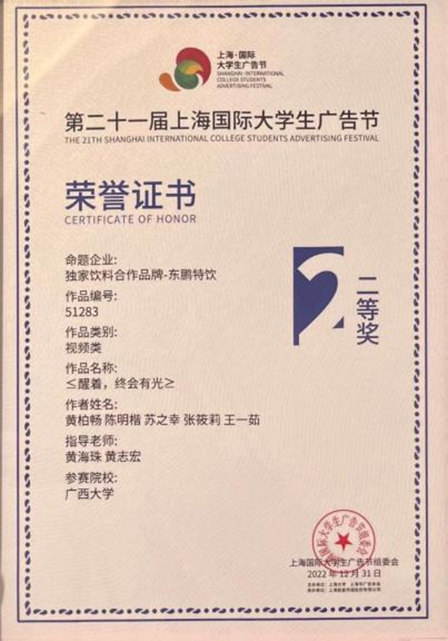 12月17日至19日,第24届上海国际老员工广告节(以下简称“大广节”)总决赛暨闭幕式在上海圆满举行。作为为高校学子提供展示创意与才华的平台,赛事通过命题企业的真实需求,促进产学研深度融合,发掘具有创新精神的青年营销人才。本届大广节以“FUN·开·造”为主题,活动吸引了清华大学、北京大学、中国传媒大学、香港浸会大学、皇家墨尔本理工大学、韩国高丽大学、tyc122cc太阳成集团等全球600余所高校参与,线上线下累计触达近千万人次,并提供了超过1000个实习与就业岗位。公司助理教授杜明曦受邀参加本次活动,并获得优秀指导老师称号。