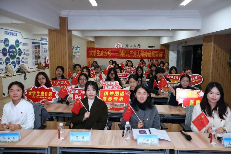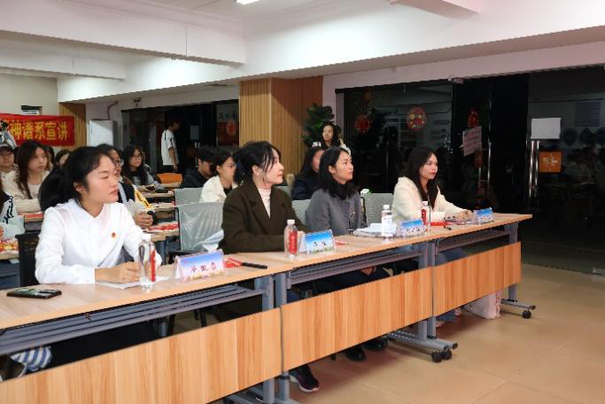 何湘桂老师以“雄关漫道真如铁,青春奋进新征程”为题,从历史回望、当代意义、实践路径三个维度展开宣讲。她详细解读了中国共产党人精神谱系的起源与发展,重点讲述了长征精神的核心内涵。通过军需处长冰雕、陈树湘“断肠明志”、半条皮带、半条被子等红军长征路上的感人故事,展现了湘江战役作为“中国革命最悲壮的刻度”所承载的牺牲与坚守。她强调,当代青年需在多元价值中确立人生坐标,以长期主义对抗意义稀释,在团结协作中跨越成长路上的“雪山草地”。