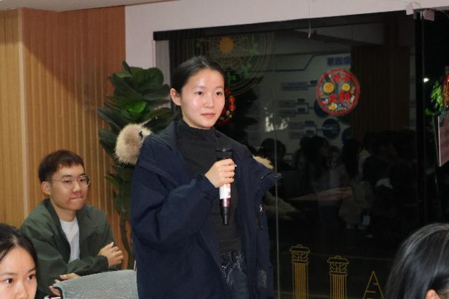 农岚程同学以“牺牲、守护、追寻、出发”四个关键词,分享了对长征精神的理解。她表示,作为新闻学子,应以笔为刃、以镜头为窗,成为红色基因的记录者、传播者和阐释者,在新媒体环境下通过微短剧等创新形式,让湘江战役的红色故事广泛传播。
