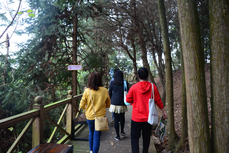 拥抱绿色自然,享受美好时光。参观结束后,教师队伍来到高峰森林公园的登峰栈道,在行走的过程中感受山间自然的清新气息,观赏“春入遥山碧四围”的秀美风光。在登峰栈道顶部可以一览群峰,大家一边欣赏景色一边说笑感慨,轻松自在。