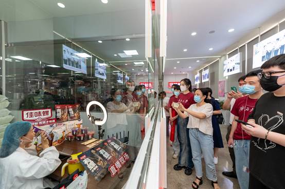 师生们参观企业的螺蛳粉直播间