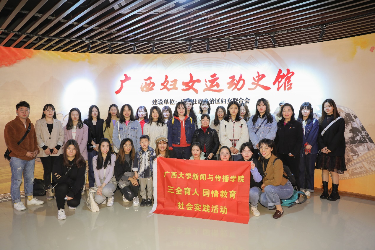 师生一行首先来到位于广西妇女大厦七楼的广西妇女运动史馆参观学习。参观过程中,师生们跟随讲解员的步伐,通过一句句生动讲解、一张张历史照片、一件件陈列展品等,全方位地了解了广西妇女运动的历史发展进程,以及各级妇联组织在各个时期履行职责、服务妇女儿童方面所做出的突出贡献和取得的辉煌成就。在和平的新时代,通过纪念馆的丰富史料感受广西妇女先烈和前辈们艰苦卓绝的奋斗历程,师生们被深深感染和震撼,也为妇女运动取得的伟大成就和社会主义建设过程中彰显的女性力量感到自豪和骄傲。这也将激励着同学们在不忘历史的同时,传承广西妇女运动的崇高精神,担当新时代的使命和责任,为新中国的建设与发展尽一份绵薄之力。