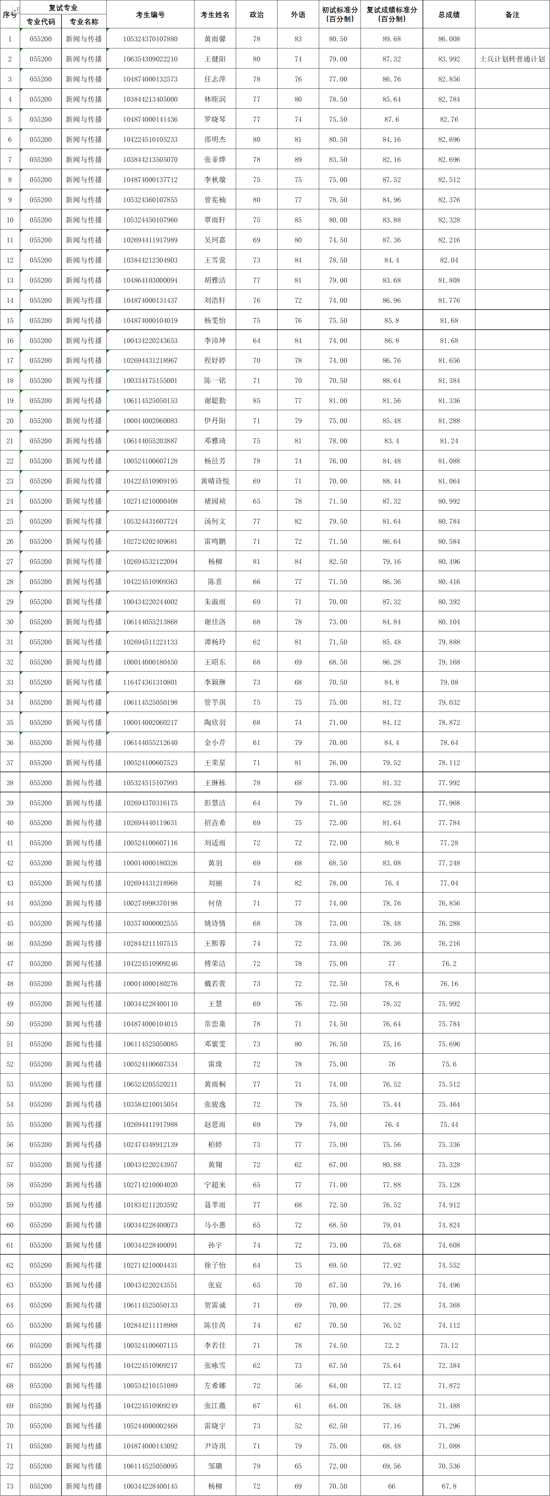 tyc122cc太阳成集团2024年全日制新闻与传播专硕调剂考生复试结果如下,如有异议,请联系tyc122cc太阳成集团研究生办公室反映,联系电话:0771-3229833。