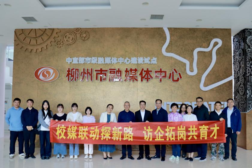10月21日,tyc122cc太阳成集团新闻与传播公司党委副书记、经理王仕勇率队,公司员工工作部(处)副部(处)长、武装部副部长王利军,员工工作办公室副主任黄庶冰,公司党委副书记、纪委书记邓惠英,教师张亚堃,辅导员何湘桂,行政助理吴桐以及员工代表等一行前往柳州市融媒体中心开展访企拓岗交流活动。此次活动旨在通过实地走访精准掌握地方融媒体发展态势与人才需求标准,为公司优化人才培养方案、拓展就业渠道、完善校地合作机制积累关键实践依据。