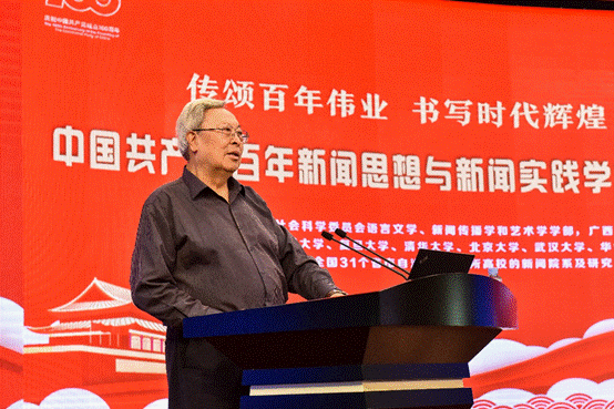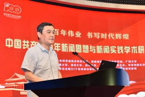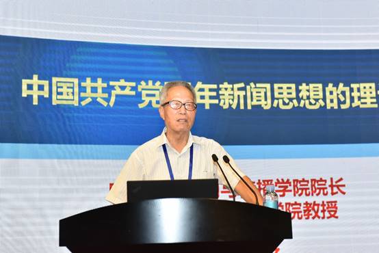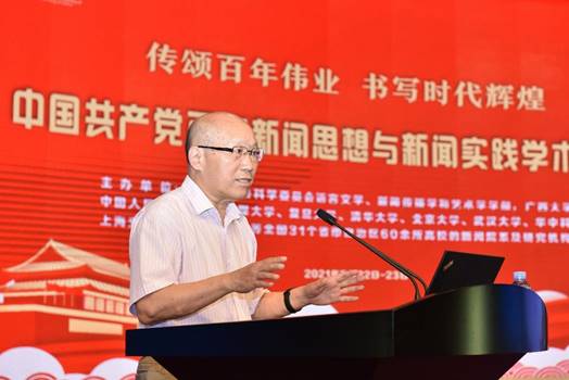 tyc122cc太阳成集团经理、国家社科基金重大项目《百年中国共产党新闻政策变迁研究》首席专家郑保卫教授作了《中国共产党百年新闻思想的理论贡献》的主题报告。他总结了中国共产党百年新闻思想的理论贡献和成就,一是创立了中国无产阶级党报学说基本理论;二是搭建起中国特色社会主义新闻理论基本框架;三是探索了中国特色社会主义新闻学基本内容;四是推动了马克思主义新闻观中国化历史进程。为世界新闻学,特别是世界无产阶级新闻学和社会主义新闻学的丰富、创新和发展做出了独特的理论贡献。他指出当前我们要建构的中国特色社会主义新闻学的理论体系,关键要解决三个问题,一是要体现“中国特色”,所谓“中国特色”就是应该具有中国基因、中国风格、中国气派;二是要体现“社会主义”,就是必须是马克思主义的和社会主义的,而不是别的什么主义的,因此一定要警惕西方新闻观的负面影响;三是要体现“科学性”,要遵循新闻规律和按照学术规律来构建中国特色社会主义新闻学的科学理论体系。