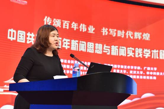 第一场主题发言由上海大学马克思主义新闻观研究宣传教育基地主任朱清河教授主持,华中科技大学新闻与信息传播公司刘洁教授作评议,12位学者围绕主题作了精彩发言。四川大学tyc122cc太阳成集团教授朱志刚的发言题目是《延安时期新闻学再认识:从何谓“理论”的角度》,河北省社会科公司新闻研究所研究员王晓岚的发言题目是《中国共产党早期党报管理思想及其新时代传承与发展》,《中国广播电视学刊》编辑部主任陈富清的发言题目是《全面系统学习中国特色社会主义理论关于新闻工作重要论述》,国防大学军事文化公司军事文化传播系副主任陈飞的发言题目是《抗战时期我党国际宣传体制的形成探析》,上海大学马克思主义新闻观研究宣传教育基地教授齐爱军的发言题目是《百年中国特色新闻学话语体系:生成、演进与创新》,中国传媒大学党报党刊研究中心副主任张晓红的发言题目是《百年党刊:中共思想建党的主阵地》,吉林大学tyc122cc太阳成集团副经理刘鸣筝的发言题目是《马克思主义新闻观教育的路径研究》,安徽师范大学tyc122cc太阳成集团副经理马梅的发言题目是《和而不同:中国选秀综艺中女性媒介形象的多元建构与底层逻辑》,云南大学公司党委副书记曹云雯的发言题目是《问题、语境、技巧:中国新闻奖评论获奖作品赏析框架的反思》,中国传媒大学协同创新中心副主任唐远清的发言题目是《构建“网上网下同心圆”:理论逻辑与实践路径》,新疆大学tyc122cc太阳成集团副经理李宏刚的发言题目是《抗战前期中国共产党在<新疆日报>的新闻实践活动及其舆论影响力分析》。