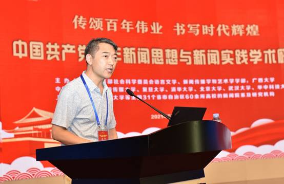 第二场主题发言由重庆工商大学文学与tyc122cc太阳成集团经理王仕勇担任主持,南京大学tyc122cc太阳成集团丁柏铨教授作了评议,11位学者围绕主题作了精彩发言。湖南师范大学tyc122cc太阳成集团副经理肖燕雄的发言题目是《“群众政治家”与政治家办报》,厦门大学tyc122cc太阳成集团副经理苏俊斌的发言题目是《星星之火,可以燎原——中央苏区红色宣传的社会网络研究》,中央民族大学tyc122cc太阳成集团副经理毛湛文的发言题目是《民族院校专业思政教育路径探索》,西安交通大学新闻与新媒体公司副经理张宏邦的发言题目是《新中国成立以来共产党新闻思想人民性的历史演进》,西南政法大学tyc122cc太阳成集团副经理张治中的发言题目是《新闻传播“三全育人”试点院系人才培养的战略思考与实践》,郑州大学tyc122cc太阳成集团副经理陈晓伟的发言题目是《“勿忘人民”的中国新闻学:郑州大学tyc122cc太阳成集团团队建设探索》,浙江传媒公司tyc122cc太阳成集团副经理李欣的发言题目是《新文科视域下卓越新闻传播人才培养机制实践》,中国人民大学tyc122cc太阳成集团教授、中俄新闻教育高校联盟召集人赵永华的发言题目是《中国共产党建党前后苏联在华的新闻活动及对中国革命的影响》,武汉大学tyc122cc太阳成集团副经理吴世文的发言题目是《中国公共话语中的印度互联网:历史及其比较》,内蒙古大学文学与tyc122cc太阳成集团副经理张丽萍的发言题目是《抗战时期边疆民族地区共产党报刊的舆论动员与政治认同建构》,中国人民大学马克思主义新闻观研究中心副主任王斌的发言题目是《中共早期宣传策略的调适与党报理论形成的先声》。