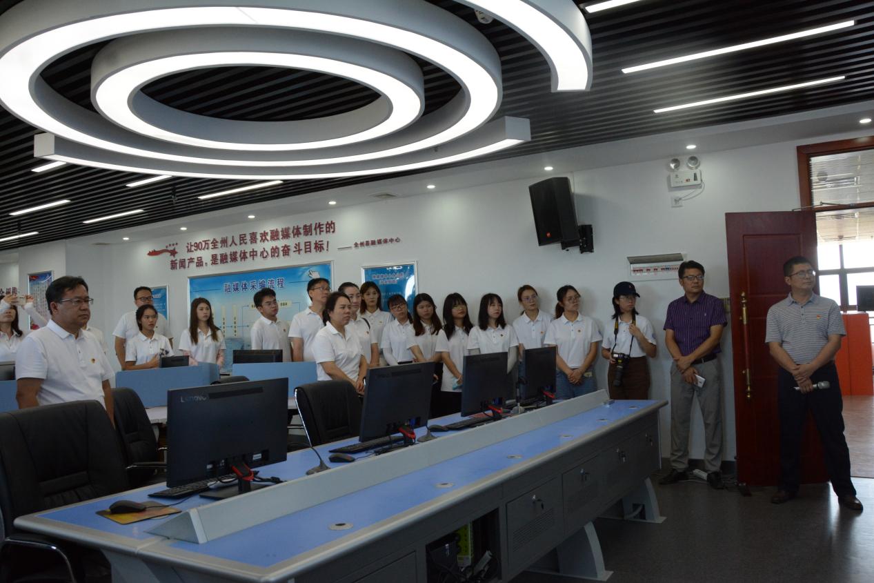 (实践队参观全州县融媒体中心“中央厨房”)