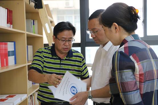 调研组一行首先参观了学院的部校共建tyc122cc太阳成集团成果展,唐兴书记向其介绍了部校共建tyc122cc太阳成集团的成果及特色,包括马克思主义新闻观研究、精品课程、人才交流、实践基地和研究智库等。此外,调研组一行还参观了融媒体中心、全媒体交互式演播中心、马克思主义新闻观书屋等,并查看了部校共建工作的相关材料。