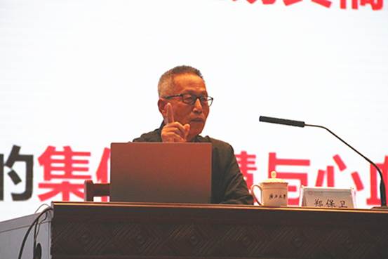 报告在郑保卫教授为该校tyc122cc太阳成集团员工授书仪式后正式开始。郑保卫教授从编写背景、思路,及其理论框架与知识体系四个方面,介绍了该书的“出生”过程。他介绍说,《马克思主义新闻观十二讲》是中宣部和教育部组织编写的第一本马克思主义新闻观统编教材,是国家社科基金特别委托项目“马克思主义新闻观研究”的最终成果。他作为主编,带领全国十几所知名新闻院校和科研机构的13名专家学者共同撰写。该书从2014年正式立项,经过五年时间的精心打磨,反复修改,于今年3月1日正式由高等教育出版社出版发行。