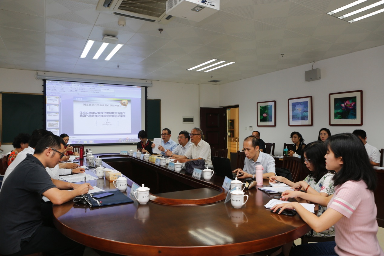 开题仪式结束后,清华大学国际传播研究中心教授李希光、中国气象局公共气象服务中心副主任潘进军、中国新闻社上海分社社长李鹏、能源基金会北京办公室策略传播总监荆卉、广西壮族自治区气象局公共气象服务中心总编导罗桂湘等气候传播领域的知名专家,在听取课题组对项目的研究框架及内容介绍后,围绕着项目的价值和意义、项目的内容及观点、项目应达到的目的与效果、项目的可行性等方面进行了论证。
