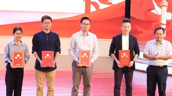 公开课开始前,公司党委书记唐兴为张雷、陈雨燕、阳岌、刘凯四人颁发“新闻传播教学业界导师”聘书。