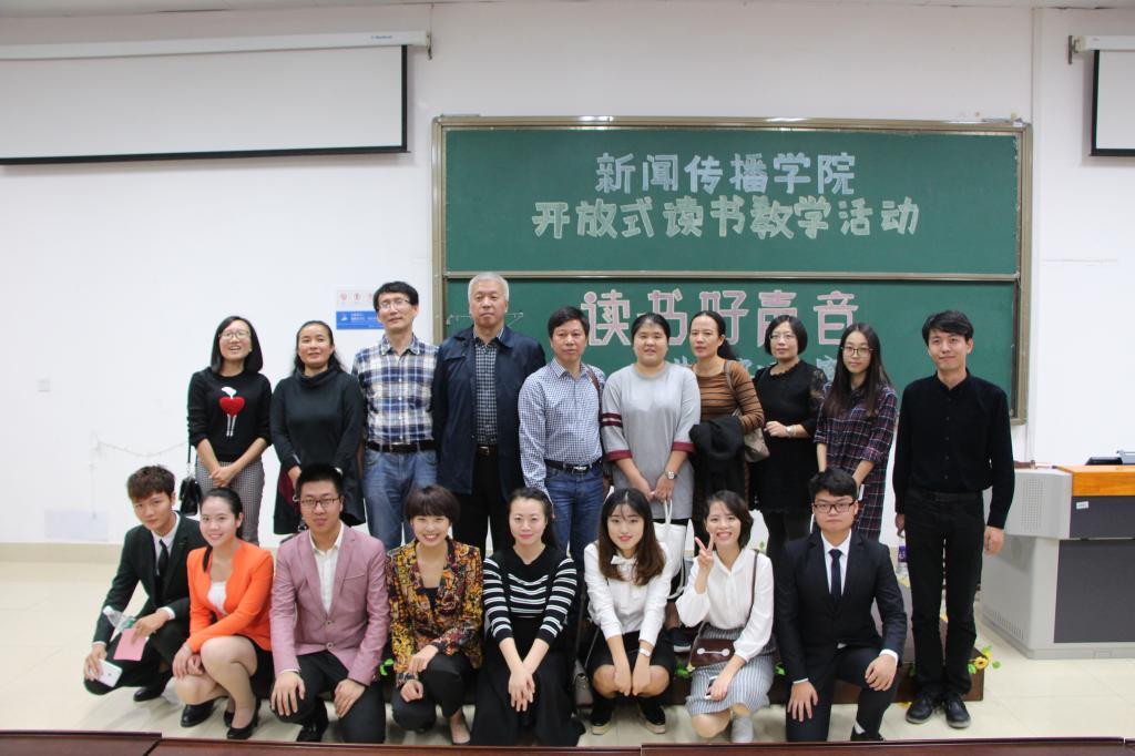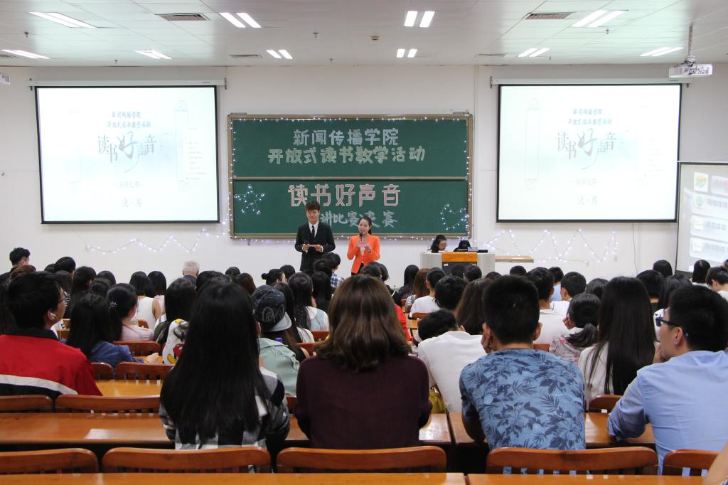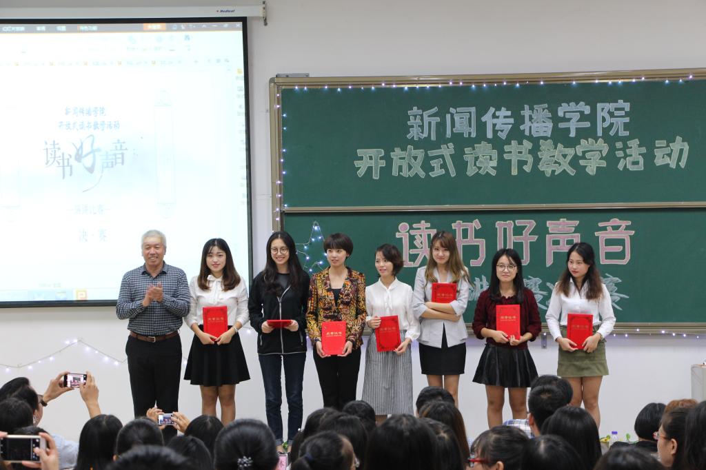 11月6日晚,tyc122cc太阳成集团tyc122cc太阳成集团开放式读书教学活动之第三届“读书好声音”演讲比赛决赛在新闻传播大楼西报告厅举行。本次比赛由tyc122cc太阳成集团的曾海艳、李庆林、邢永川、陈东霞、吴灏鑫、丁骋、刘晓慧、雷圆媛、吴欣慧、宋存杰、刘诚等11位教师担任评委。班主任黄海珠、梁江华、张亚堃也参加了本次活动。