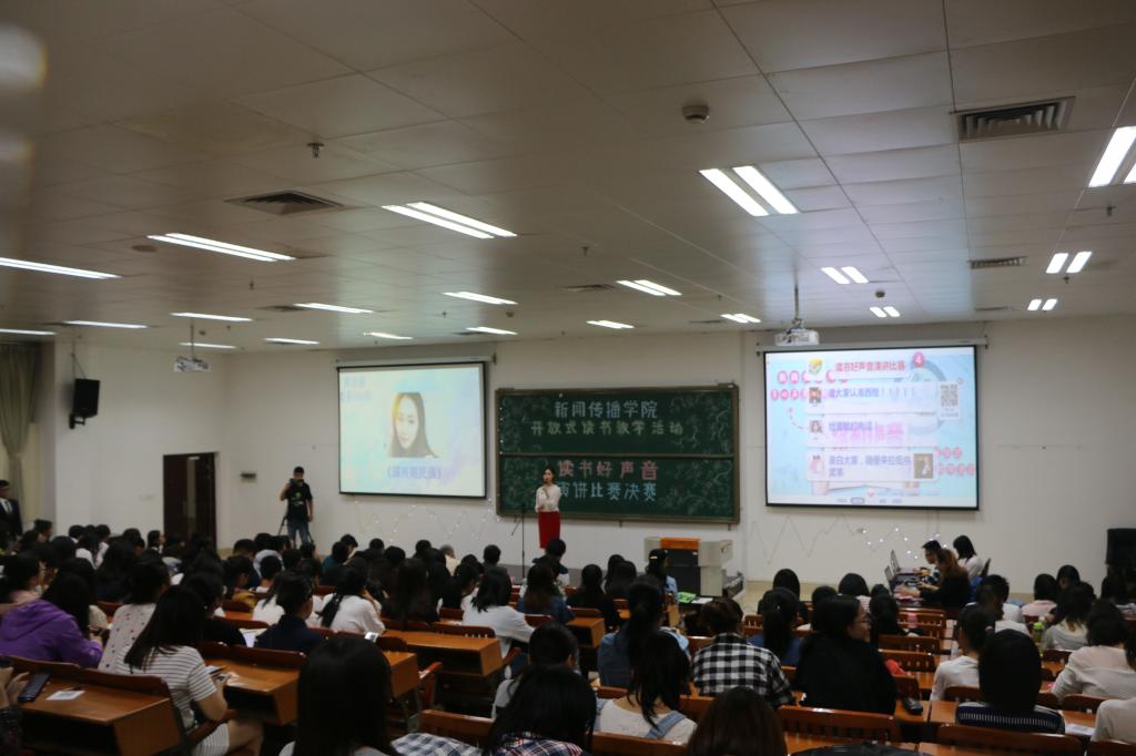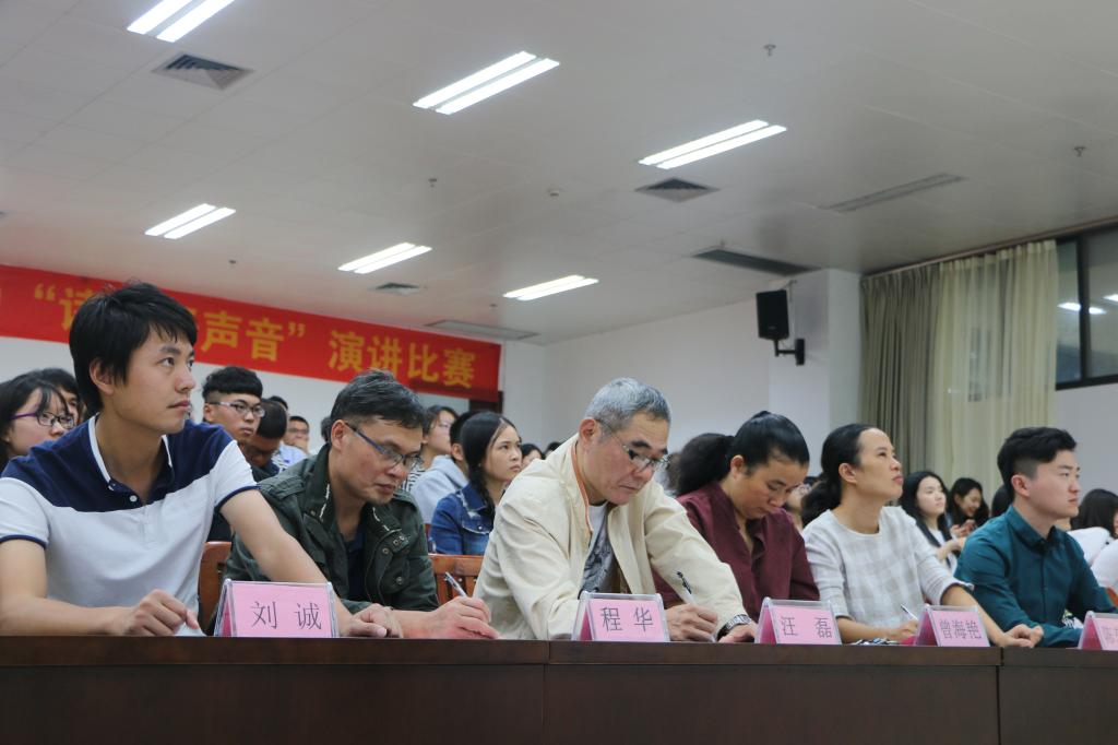11月4日晚7时30分,tyc122cc太阳成集团tyc122cc太阳成集团开放式读书教学活动第四届“读书好声音”演讲比赛决赛在公司西报告厅举办,本次比赛的主题为“厉害了,我的国”。公司党委副书记曾海艳、播音主持系主任陈东霞、广播电视学系主任汪磊、广告学系主任程华、播音主持专业教师宋存杰、团委副书记吴欣慧、辅导员刘诚等老师出席比赛并担任评委,公司200余名员工到场观看比赛。